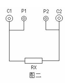 1、回路電阻測試儀按圖二所示四端子接法接線。