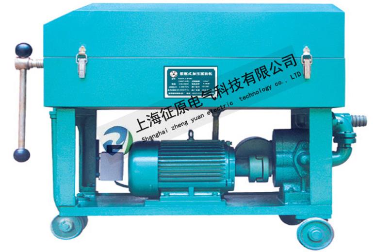 濾油機是由齒輪泵、濾清器、安全閥、回油閥、放液水嘴、濾床(包括壓力表、濾板、濾框、濾紙、油盤)、前支架、后支架、底盤、拉桿、聯軸器及電動機組成,其中濾板、濾框交替地組成各個獨立的過濾室,濾紙夾在濾板與濾框之間。被濾油液從濾清器進油孔處吸入,通過濾清器去除較大雜質后,再進入齒輪泵。由電動機通過聯軸器帶動齒輪泵旋轉,使油液壓入濾床,通過濾油紙將油中雜質濾凈。由于濾油紙的毛細管作用,可以吸收油中殘留水份。安全閥的作用是控制管道系統的壓力,當油壓超過規定值時,安全閥就立即啟動,使油液在泵中自行循環,油壓不再上升,以確保設備安全運轉。回油閥借助齒輪泵進油口的真空作用,將油盤內的余油吸入濾清器。放液水嘴供提取油樣。