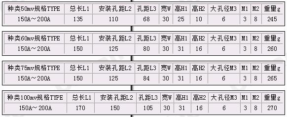 FL-2型150A~200A錳銅分流器技術(shù)指標(biāo)