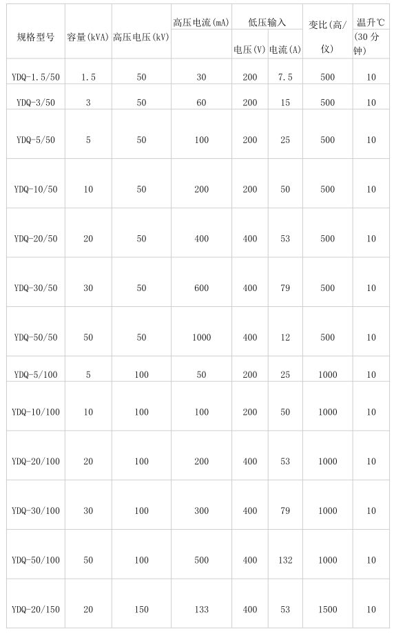 充氣式試驗變壓器產(chǎn)品技術規(guī)格