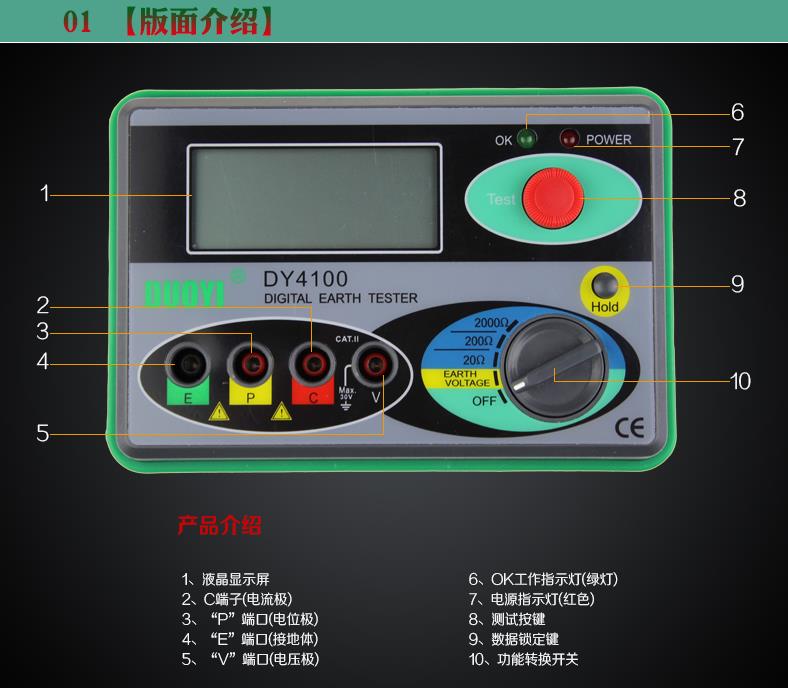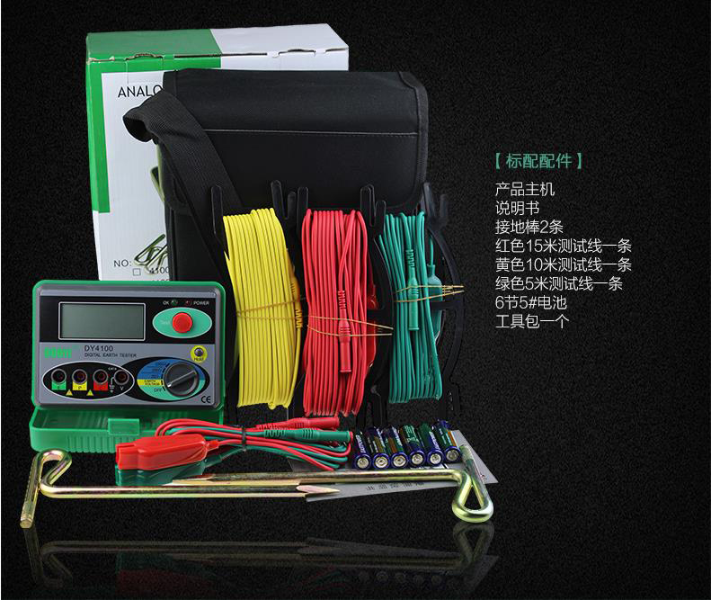 一、DY4100數字式接地電阻測試儀是摒棄了傳統的人工手搖發電工作方式,采用先進的大規模集成電路,應用DC/AC變換技術將三端鈕、四端鈕測量方式合并為一種機型的新型數字接地電阻測試儀。適用于電力、郵電、鐵路、通信、礦山等部門測量各種裝置的接地電阻以及測量低電阻的導體電阻值;本表還可測量土壤電阻率及地電壓。