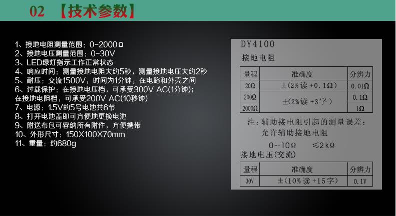 二、DY4102電子式指針接地電阻測試儀技術指標: